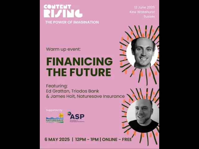 With Ed Grattan from Triodos Bank and James Holt from Naturesave Insurance. Explore the challenges and opportunities in aligning financial products with sustainability goals, including risk assessment, climate change considerations, and supporting purpose-led businesses. Hosted by Naturesave Insurance and the Association of Sustainability Practitioners.